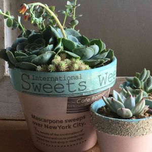 七福神さんが子沢山になってぎゅーぎゅーになったから、親株をチョンパ❣️ そしたら 超ちっこい子があちこちに芽吹いてきて可愛い💕