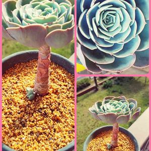 こんにちは𖤣𖤥𖠿𖤣𖤥𖤣𖥧𖥣。𓈒 𓂂𓏸 朝休憩に庭へ🤣 タニパト 去年迎えた エケベリア・七福神(インブリケイタ) 札は、よく見るコレです ローラ、リラ、ライムアンドチリ エレガンスなどは、必ず狩る👍✨ 今時期~来年5月のどこかで アソートにて入荷のとこは 即品切れです(꒪ཀ꒪) ケース仕入れ場所は、 3ケースくらいは入荷します 家は、屋根の下で 育ててる かなり小さくなり、まだ日照不足の為 葉はしっかりして硬いけど薄く フォルムも通常丸っこいけど あと少しカナ(◍´꒳` ) 子株も育ってて ぎゅうぎゅう🤣🤣 1鉢づつ植え替える この札は、ホムセンでも見ます 見つけたら是非育てて見てほし株♥️