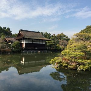 初詣で参った平安神宮の外苑です。 お天気が良く、池の水面に景色が映ってます。
