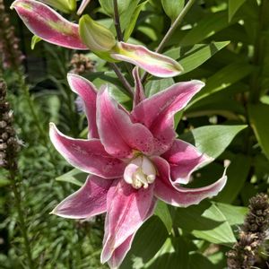 おはようございます ♥️🤍ローズリリーナタリア🤍♥️ 今年も、無事に開花 2021年秋に球根を植え、3度目の開花 名前の通り、薔薇🌹のようなユリです。 華やかだなぁ🥰🥰 我が家では、『ユリの季節の終わり』を告げる花です。 今年は、例年より、ユリの開花が早く、5月半ばから、スカシユリを筆頭に、色んなユリが次々と咲いてくれました。2か月間、庭を眺める愉しさをくれたユリたちとも、そろそろお別れです。 今年から、カサブランカも開花を始めたので、これからは、どちらが最後になるかな…