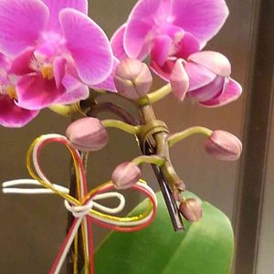 デンドロビウム系でしょうか 花芽かな 4年目にして 初です 今まで ほったらかしだったので ありがとうの気持ちです