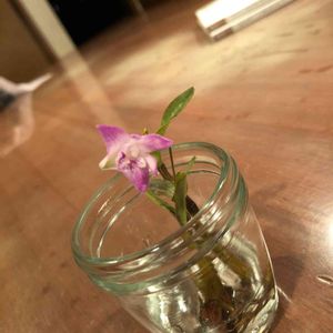 よく行く園芸店に寄ったら、華やかなシンビやカトレアのなかにポツンといました。 あんまり状態良くないかなと思いつつ、連れてってと言われている気がして購入してしまいました。