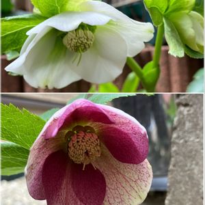 ⌘クリスマスローズ 咲きました♪ 今の所に越してきて植えたので1番長くいるお花です。 シンプルなシングルのホワイトとピンク。 それにしてもどちらも下向きで咲くので、スマホで撮影するの難しい💦