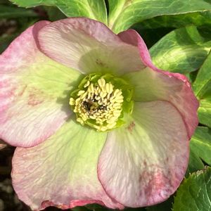 🍀クリスマスローズ🍀 2021年 に小さな苗をお迎えして一年目は鉢で昨年地植えにしてようやく初めて咲いてくれました🥰 タグ通りの子でシングルちゃん☺️ 丸弁で花の模様がバイカラーで内側が黄緑外側がピンクでやわらかな雰囲気がとても可愛いです💖 咲いてくれてありがとう🥰