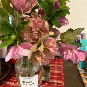 ピンクダブルのクリスマスローズ💕 数年前にななちち邸から嫁いで来ました その時は一鉢にピンクと白が植わっていて😊 昨年までは2色で咲いていたのですが今年はピンクだけに 白負けちゃったのかな〜💦 今月もよろしくお願いします😉