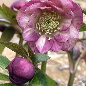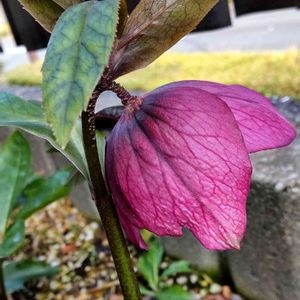 クリスマスローズ パープルd.d 昨年初、駐車場脇の狭い路地に植えたクリスマスローズが大株に育ってくれました😊 でも、花がほぼ全て下向いて咲いてるので、中々お花のお顔を見ることができません😂