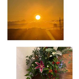 新しい年の 力強いお日さま 私の初日の出 (左上…元旦の朝、散歩にて) 左下…多肉寄植え 右上…青空に南天 右下…初レオ、ヨロシクで〜す! 🏷楽しもう2023♡