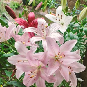 こんにちは☔ 今日も雨ですが😅 玄関口に咲いてるスカシユリとても綺麗に咲いてます😍