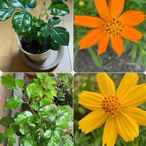 ☆コーヒーの木 5/18に百均で購入しました。 暑くなるとどんどん成長してきました🤗 ☆キバナコスモス オレンジ、黄色