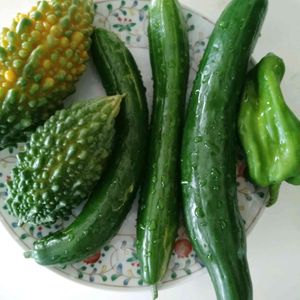 おはようございます🌂 収穫しました ゴーヤ もう少し大きくなってからと思っていたのに黄色く熟してきたので採りました😄 きゅうり🥒 また明日と思っていると急にデカくなります😄 ピーマン🫑 暑いけど今日も元気よく〜 ヤッホ〜🤩