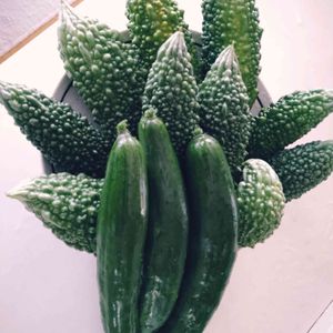 おはようございます☀️ 本日の収穫 ゴーヤ ちょっと早めに。 きゅうり🥒 ちょっとデカ目。 今日も嬉しいです。 ヤッホ〜🤩