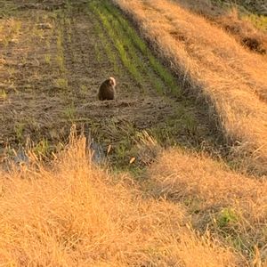 こんばんは🌆 車中から ぼっちのお猿さん🥺寂しそう〜 向いのは田んぼにはいっぱいのお猿さんがいましたよ😌😌🐒🐒