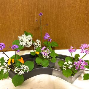 雑草と山で取ってきたものと自分で育てた花でいけてみました😊 カリフォルニアポピーは夜になると花が閉じる性質なので撮影が夜だったため、閉じてます