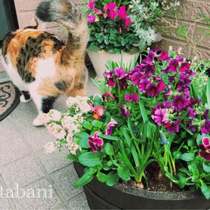 ご近所にゃんのことも、今年もよろしくお願いします(*´꒳`*)💕 私の育てているお花の隣でお昼寝するのが好きな、可愛いご近所の三毛猫さんです。