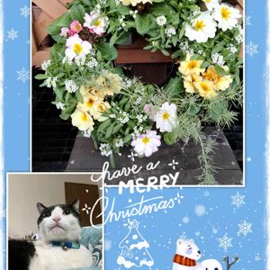 12月22日 今年最後のニャンニャン祭り 参加しまーす😽☃️ 久しぶりに凛々しく撮れました キキくん😽💓 今年は膀胱炎で医者に通う事もなく夏も食欲は減らず食いしん坊で少し肥満気味が心配ですが…💦 健康的な1年に感謝です💕💕 お花はブリムラとアリッサムのリース寄せ植え🌲