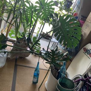 そして西部屋のモンステラとユッカとポトスのジャングル化の部屋から😅💦 もちろんゆうちゃんが移動するともれなく着いてきます😂 そして木根?がボーボー伸びちゃってそこにもお水をあげたら新芽のモンステラのドリルが動き始めたした😂💦 まだまだ成長するみたいです😅 ちなみにゆうちゃんと並んでも大きいユッカは天井まで伸びそうです笑