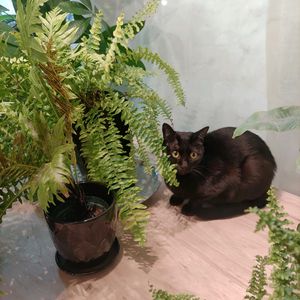そして家を出るギリギリに撮った📸 朝日を浴びたハイビスカス🌺とプア🐱ちゃんです笑 みんないつもありがとね😭😭😭