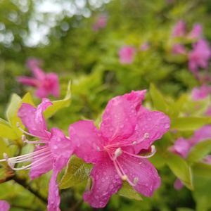 〜今日のお花〜 フジツツジ 🌿ツツジ科 🌿ツツジ属 分布⇒伊豆半島・四国・九州 花の大きさは2〜3㌢ 🏷️紅紫色の 🏷️花咲く乙女たち♡ 🏷️ニコニコ日曜日 平野〜山地の林内に自生し 藤色の花が咲くため フジツツジと名付けられた。 花きグループ