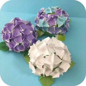 今日は雨☔️ 部屋の中に折り紙の紫陽花💠🍃