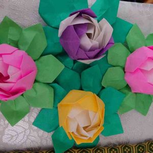 こんばんは🌙*゚ 立体折り紙のバラ🌹✨ 母の器用さがうらやましいです😌