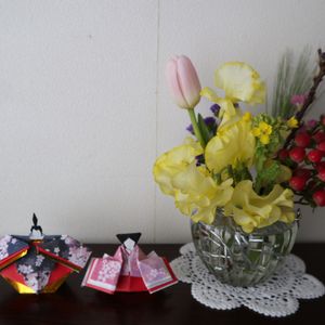 ひな祭り🎎🍡🌸 折り紙のお雛様 教えてもらいました(^^)
