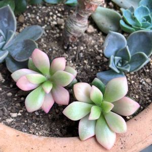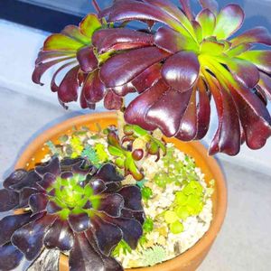 寄せ植えして、赤のスイッチ入った? 右下の株を分けて寄せ植え。