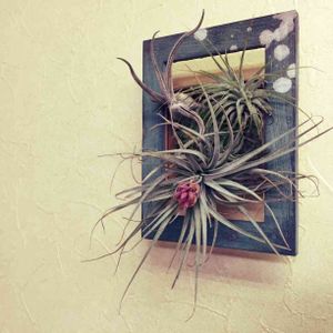 余った廃材でチランジアホルダー✨ これはイベント用じゃなくてプレゼント用😋 思いっきり古材風に仕上げました✨