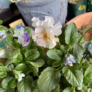 今朝のベランダより1枚 ꕤ ビオラ•水色のワルツ ꕤ 水色のお花を期待してお迎えしましたが、 お迎えした時から水色ではありませんでした🥲 色変期待したけどないみたいです🤣 花数が増えてもりもりになってきましたが、 お花のステムが短くて、葉っぱに埋もれて しまってます🤣