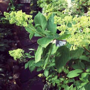 水無月(ピラミッドアジサイ) ノリウツギの園芸品種 庭のアジサイが咲き終わる頃に咲き始めてくれる水無月♪ 別名通りに ピラミッド型になって咲き始めました(*^^*) 年々株が大きくなってきて レンガの通路に 大きなお花がぴょーんと 伸びてきちゃいました。。 もう少し咲いたら 切花にしちゃいます♡