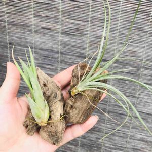 エアプランツを流木にくくりつけてみた。ほんとにこんなんで根付くのかね…。とは思いつつ雰囲気良いからいいのだ。 どちらもダイソーで購入のエアプランツ。チランジアの方の名前がわからない。