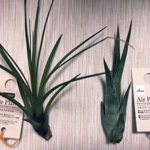 ティランジア(チランジア)。100均。植物を育成するというよりも部屋のインテリア(植物に囲まれた生活)として購入。右上がコルビーなのか、プセウドベイレイなのか、シルシナータなのか、そのどれとも違うのか…。相変わらずダイソー産の難しさ。