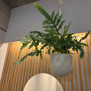 久しぶりに植物購入🪴ダバナ。 ウチにいるシンボルシダのブルースター ちゃんの変異種っぽいので気になっていて、これも大きくなるのかなと躊躇してましたが400円位と安かったので購入。 あまり水やりしなくていいからハンギングにしてみたいけど吊るす場所が…