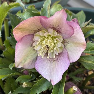 クリスマスローズ 剣弁のスポット花 可愛らしいペールピンク🩷 10年以上の古株さんです。