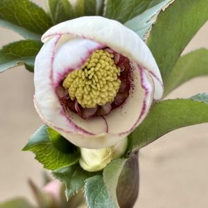 クリスマスローズ ホワイトシュガーシフォン やっと開きかけた蕾を覗きました👀 可愛い🩷 まだ若い株で去年はあんまりソバカスがハッキリしていませんでした、が、可愛いソバカスがばっちり見えます👀👀 嬉しいー🩷😃
