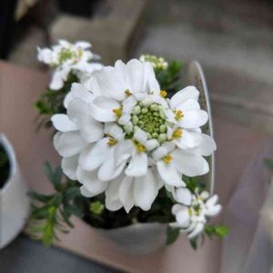 白くて大きなお花🌼 その横に小さなお花も咲いてる(*^O^*) 花びらが沢山で不思議な形してるな➰