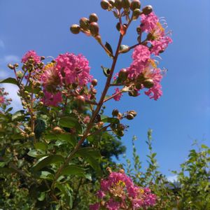 おはようございます☀ 外で1時間くらい水やりとブルーベリーの収穫をしたら、汗びっしょり💦 即、梅ジュース飲みました🥤 いつの間にか、サルスベリが咲いていました💗