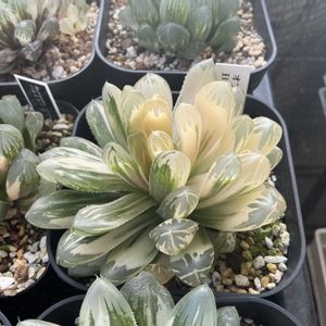 ●ススキノキ科 ツルボラン亜科 ●ハオルチア属 ●白雪絵巻錦 糊斑④😻😻 🌱🌱🌱🌱🌱🌱毎月26日27日は糊斑の日🌱🌱🌱🌱🌱🌱 この子はあまり色合いが変わらない株なので、紅葉時でも黄色系です。☝️😁