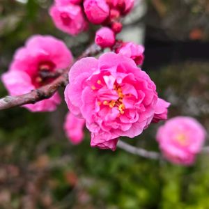 今年初めての梅の実 水やりをしていると見つけました👀 透き通ったピンクが可愛い💠 これからしばらく実の増えるのが 朝の楽しみになります💦