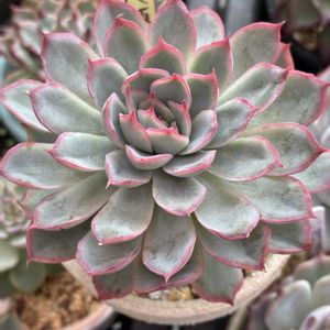 冬よりきれいな姿になるとドキッとする。 最近、恋煩いが冬よりきれいなので、健康観察が欠かせない🧐 昨日の朝、三日月が美しいので手に取ったら、それは最後の輝きだった。オクサレ様降臨。 4月に挿した三日月の葉挿しは全て出なかった。(葉っぱ取るのヘタクソ過ぎ) バラけた三日月から大丈夫そうな葉っぱを数枚を取ったが、その状態から取っても、1週間もすればオクサレになることが多い。 わかっちゃいるが、保険株がないから一縷の望みをかける。 純正ミックスベリアは私には贅沢過ぎた。 2枚目 先日、初めてメルカリで買い物をした。 おまけに付けてくれたのが、青札の苗。驚いた。初めての青札。 どんな子になるのか、ドキドキする。 3枚目 多肉1年目に購入した、寄植え用札落ち苗。 これも最近きれいになってきた。 昨年よりいい感じに育っている。 来週はもう30℃の予報が出ている。 さあ気合いを入れて、夏に立ち向かうわよ!