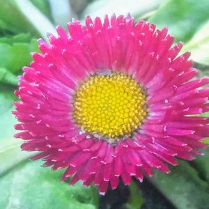 【No242 デイジー】 2月15日の誕生花デイジー。 デイジーという名はday’s eyeが語源。日が差すと花が開いて、輝く花芯を見せて、夜や曇りには花がすぼむ性質からです。 小さくて可愛い💕菊と言われ、日本ではヒナギク(雛菊)と名付けられました。長い間咲き続けるので、エンメイギク(延命菊)やチョウメイギク(長命菊)や、トキシラズ(時知らず)とも。 花言葉「美人」は見た目通りですが、属名べリスの由来となるラテン語ベリエスが、美しいを意味するから。 「純潔」は純真無垢の象徴とされているから。 「希望」は陽の光を浴びて、花が綺麗に開くから。 「平和」「控えめな美しさ」もあります。 写真の赤のデイジーは「無意識」という花言葉です。