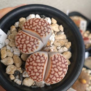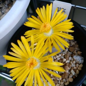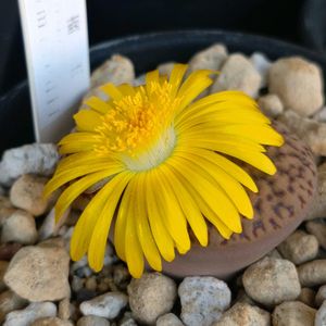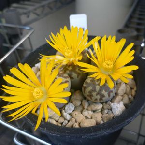 麗虹玉 平日日中は多忙すぎ、日も短くて帰宅しても真っ暗 何が咲いてるのかとか何が咲きそうとかよくわからないリトープス 土曜の今日、満開を確認
