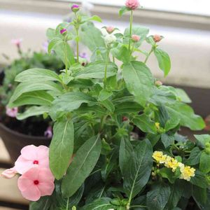 千日紅と日日草とランタナを 寄せ植えってみました。 もりもりになりますように!!