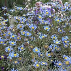 キングフィッシャーデージー いつものごとく、一番綺麗な時期の花が撮れてない😅 わァ~…˶ˊᜊˋ˶ಣ もう種ができてる😳 でも、さすが(・ω・`👏 まだまだ綺麗に咲いてるよ✿゚❀.(*´▽`*)❀.゚✿