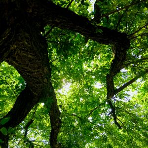 お気に入りの通り道 木の根元から見上げると 朝日がキラキラして眩しい✨ 春にUPしたときより葉っぱ🌿が 茂って緑の光が美しい😊