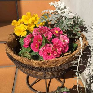 プリムラジュリアン 『マスカットのジュレ 🍇』 『イチゴのミルフィーユ🍓』 とビオラを元からあった寄せ植えにプラスし、ちょっと渋めに寄せてみました♥️