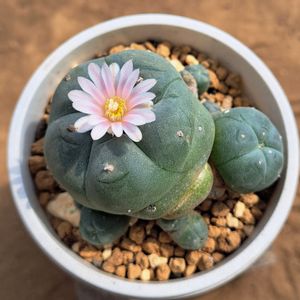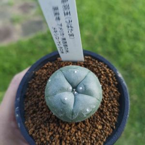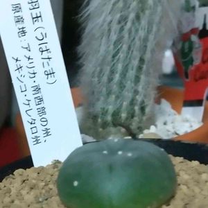 ロフォフォラ・烏羽玉。ちょっと螺旋系のタイプです。 我が家では烏羽玉や銀冠玉はほとんどダニに食われず、翠冠玉がダニに大人気です😅