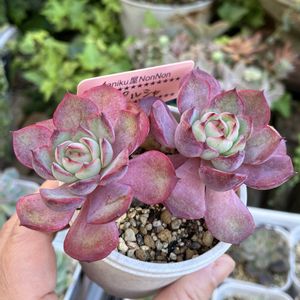 ピンクプリティ×ロメオ✨ グリコアさん苗 親株はダメになったけど 葉挿しが育ってくれました😊🩷 2つだけど…💦 大切に育てよう(*ˊ˘ˋ*)。:°ஐ..♡*