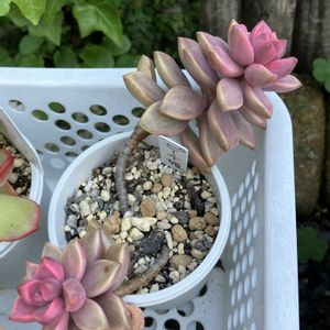 seedさんの10姫シリーズから 桜桃姫🍒 残り少なくなってきた…10姫達👸 この子も葉挿しだけど〜頑張って育てなきゃ🙌✨ ②こちらの子はピンクぽい🩷 ③裏側の子はグリーン🍀