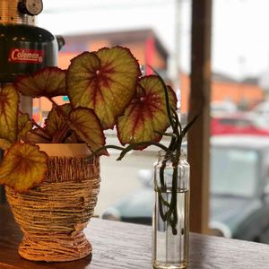 こんばんは⭐︎ 夕方の一枚📸良い感じに撮れました モデルはレックスベゴニアと水差しリプサリス✨
