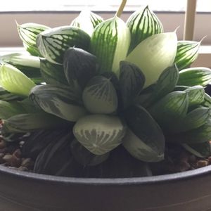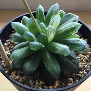 おはようございます☁️ ひたすら授粉作業に追われ💦第2弾はほぼ終了で休憩です☕️ やっぱり結実しやすい、しにくい(無理)がハッキリしますね〜はぁ😩 気を取り直してハオルチア マリンです✨さらに白斑が陣取ってきました😆 見た目は良いのですが、何でもほどほどにして〜